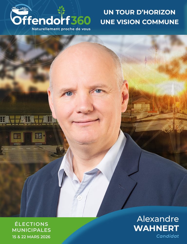 Désormais Denis Hommel a annoncé sa retraite et j’ai fait le choix de mettre pleinement ces compétences au service des habitants d’Offendorf. Avec l’équipe Offendorf360, j’ai souhaité rassembler des profils complémentaires, animés par une même ambition : agir ensemble, avec sérieux, proximité et bon sens, pour préserver notre cadre de vie et préparer l’avenir de notre commune.
